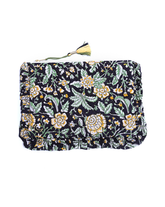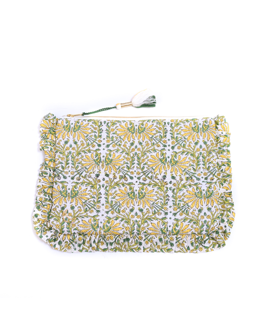 Block Print Ruffle Pouch - Yellow Floral